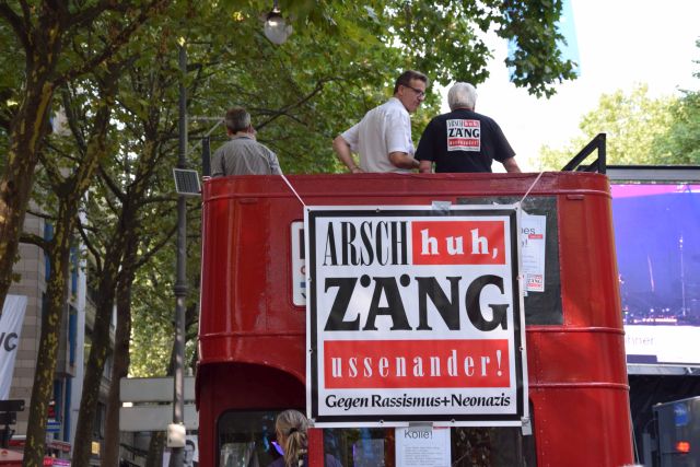 Der Höhepunkt der Arsch huh Kampagne „Du bes Kölle!“ auf dem Hohenzollernring rief au „Wähle zo Jon – Demokratie braucht keine Alternative!“