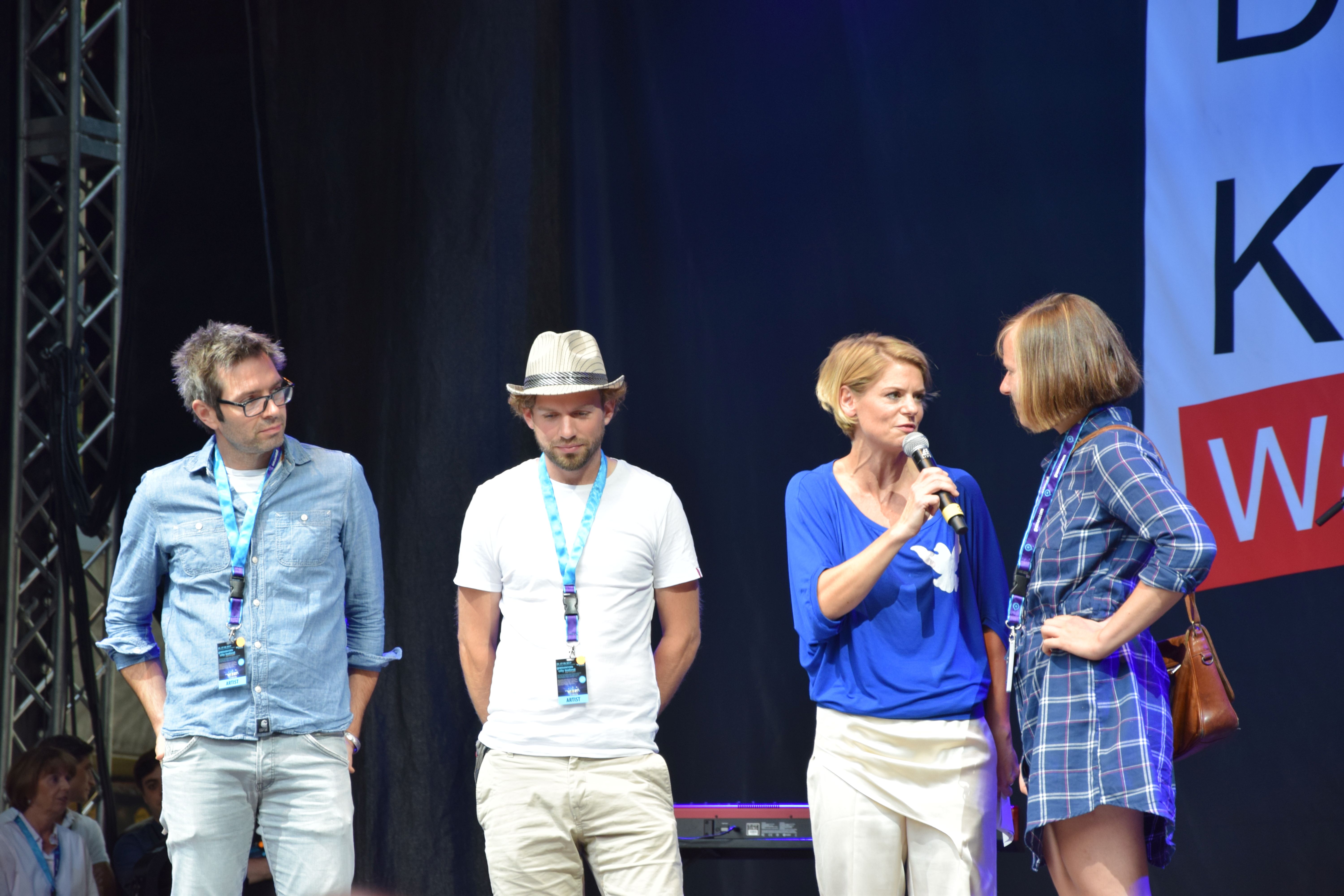 „Nach drei erfolgreichen Kampagnen-Veranstaltungen in Chorweiler, Bickendorf und Kalk mit politischer Diskussion, Kabarett und Musik wiesen die Künstler/innen und Gäste kurz vor der Bundestagswahl noch einmal nachdrücklich darauf hin, das Wahlrecht wahrzunehmen und für ein friedliches und tolerantes Zusammenleben zu stimmen und für eine solidarische und sozial gerechte Gesellschaft.“