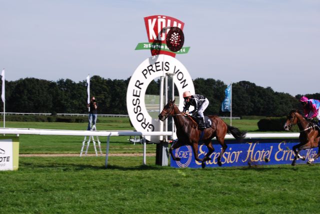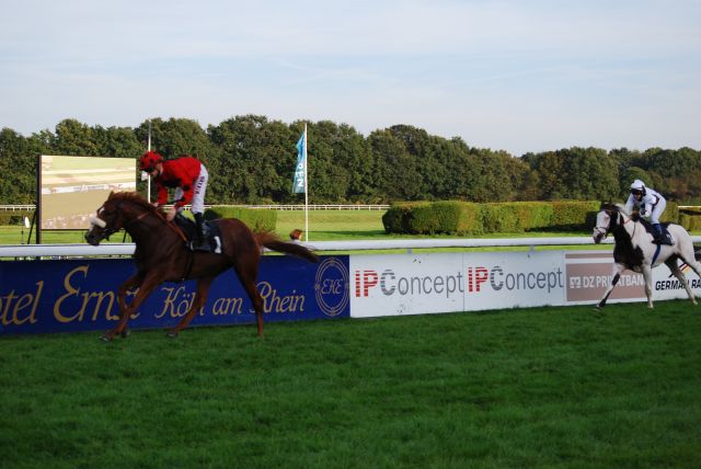 So jetzt noch mal von Anfang an: Das Erste Rennen, den Preis des Porsche Zentrum Köln, gewann Sherlock, mit E. Pedroza!