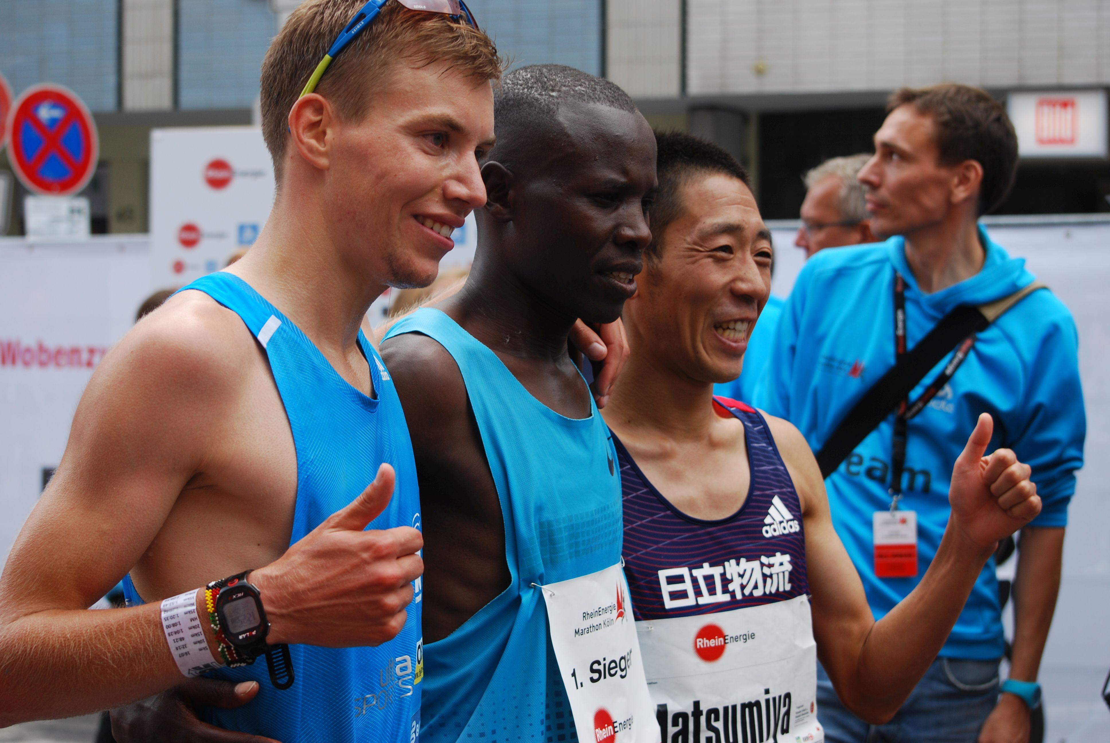 „Bester deutscher Läufer wurde Philipp Pflieger. Der Regensburger kam in persönlicher Bestzeit (2:12:50) auf Rang 16, verpasste aber die Norm für die Olympischen Spiele in Rio de Janeiro (2:12:15).