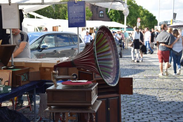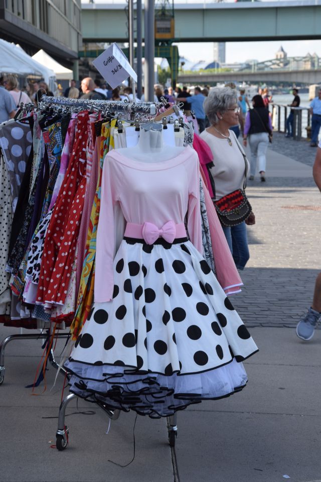 Von 10 bis 18 Uhr hatten die Besucher die Möglichkeit auf Zeitreise zu gehen und vom Schokoladenmuseum bis zum Harry-Blum-Platz im Kölner Rheinauhafen zu flanieren. Ein großer Markt bot dort alles was das Sammlerherz begehrt: Blechschilder, Möbel im Retro-Design, Schmuck und die Kleidung .