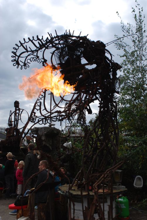 Mit von der Partie ist auch der international renommierte „Bimbo-Town“-Schöpfer und Festival-Mitbegründer Jim Whiting (www.bimbo-town.de) mit seiner Kreation „die fliegenden Beine“. Bekannt wurde der Ingenieur und Bildhauer durch seine Installation der „fliegenden Kleider“ im Herbie Hancock-Video „Rock it“ (1989), welches zahlreiche Auszeichnungen erhielt. Auch Kal Spilletich, Mitstreiter der amerikanischen Roboterkünstlergruppe „Survival Research Labs“, gibt sich die Ehre mit einem ganz besonderen
