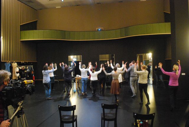 Also wenn sie die nachgebaute Lichtburg in der Ausstellung betreten, (in der Wuppertaler Lichtburg, entwickelte Pina Bausch mit ihrem Ensemble die Stücke, dieser Raum war für Besucher nicht zugänglich) dann kann es ihnen passieren, dass sie in einer der 30 minütigen Workshops geraten und zum Tanz aufgefordert werden. Keine Angst, sie werden dort nicht übermäßig beansprucht, die sich gestern dort eingefunden haben, hatten alle Spaß und die kleinen Übungen, hätte ich auch als Kniekranke nachvollziehen können 😉 Gestern hat das Jo Ann Endicott eine Weggefährtin von Pina Bausch, ganz charmant begleitet.