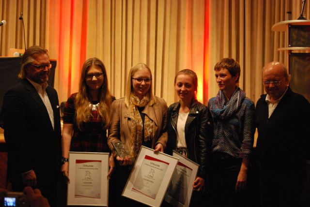 Die Gewinnern, Lisa Neumann überzeugte die Jury mit ihrer Geschichte „Rot“ , weilt derzeit in Kanada und wurde durch ihre Schwester Anna vertreten, die auch einige Passagen vorlas. Wenn man dem Laudator glauben darf, dann wird man noch von ihr lesen. Der Preis wurde von Werner Fredebold gestiftet, der selbst Vater von 5 Kindern (Töchtern) ist.