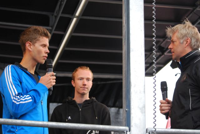 Marcel Wienands u. Dorian Aust, mit dem Moderatoren Tom Bartels- Beide kamen in einer beachtlichen Zeit von 1:13,31 ins Ziel!