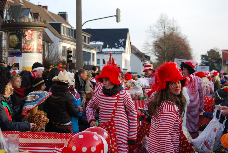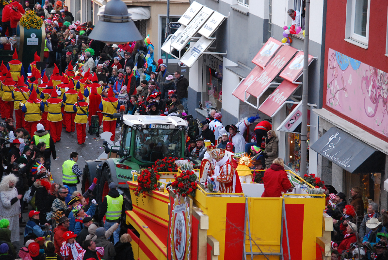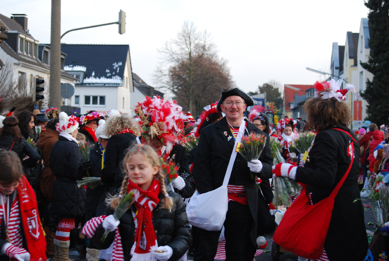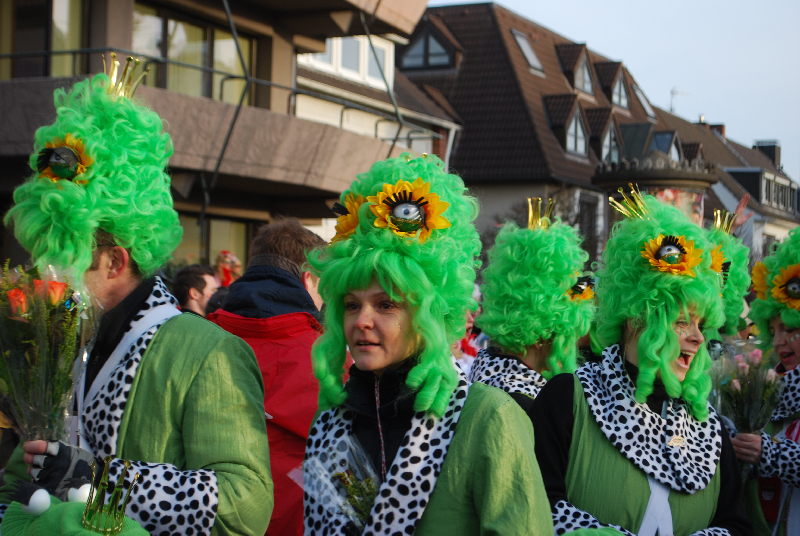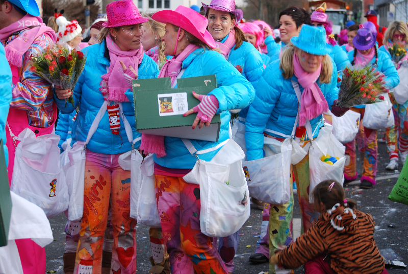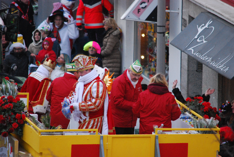Wie in den letzten drei Jahren stand ich ab ca. 15:00 Uhr mit einer Freundin gegenüber von Blumen Jahn, am Zaun des Beetes, das Karneval traditionell umzäunt ist, um die Bepflanzung zu schützen und nach ca 1 Stunde kam der Zug. Weil einer der Ordner alle die am Zaun stehen übereifrig verbannt, befindet eine sehr spät dazu gestoßene Dame, wir sollten den Zaun versetzen.(Das hätte Herrn Jahn sicher gefallen!)