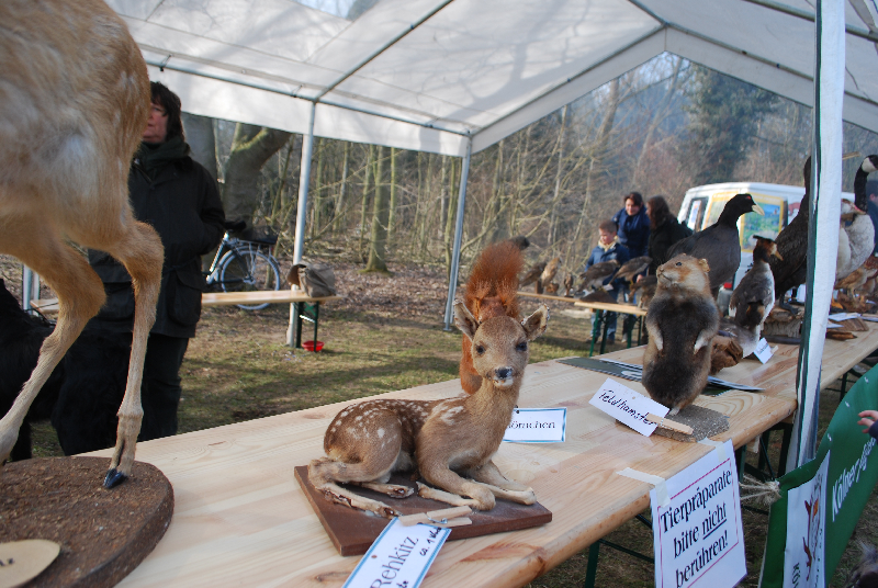 Neben, Kuchen, Würstchen und Bier gab es auch interessantes Anschauungsmaterial, in Form von ausgestopften Tieren.