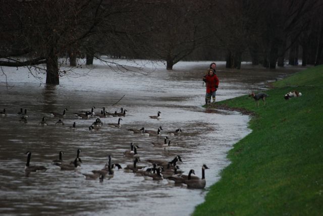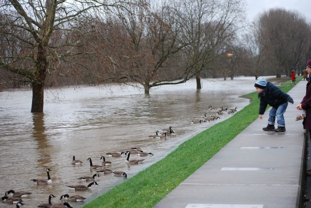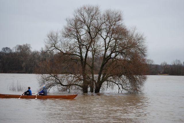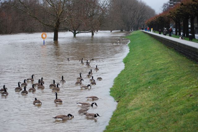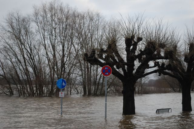 Rheinhochwasser im Januar 2012 in Köln Rodenkirchen