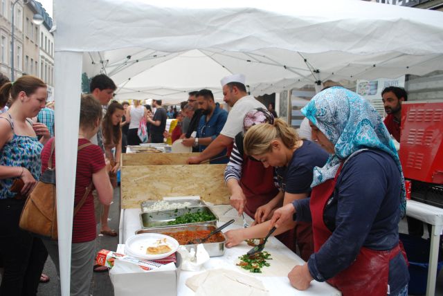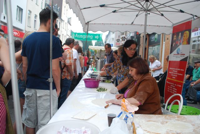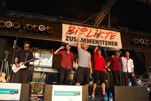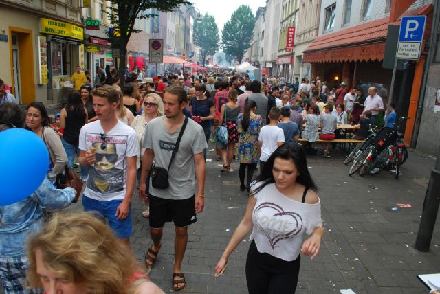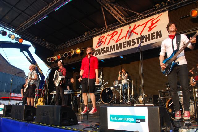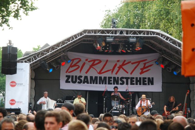 Der Anlass des Festes: „Im Juni 2004 zündeten Mitglieder des selbsternannten »Nationalsozialistischen Untergrund« mitten auf der Keupstraße in Köln-Mülheim eine Nagelbombe und verletzten 22 Menschen. 2014, zum zehnjährigen Jahrestag des Anschlags, machten 70.000 Besucher, unzählige mitwirkende Künstler und die Bewohner Mülheims unter dem Motto »Birlikte – Zusammenstehen« aus dem Tatort des Terrorakts einen Ort des gemeinsamen Feierns, Diskutierens und auch Gedenkens.“ Quelle und mehr!