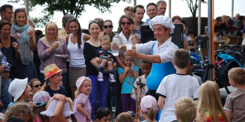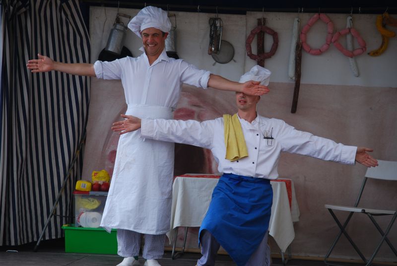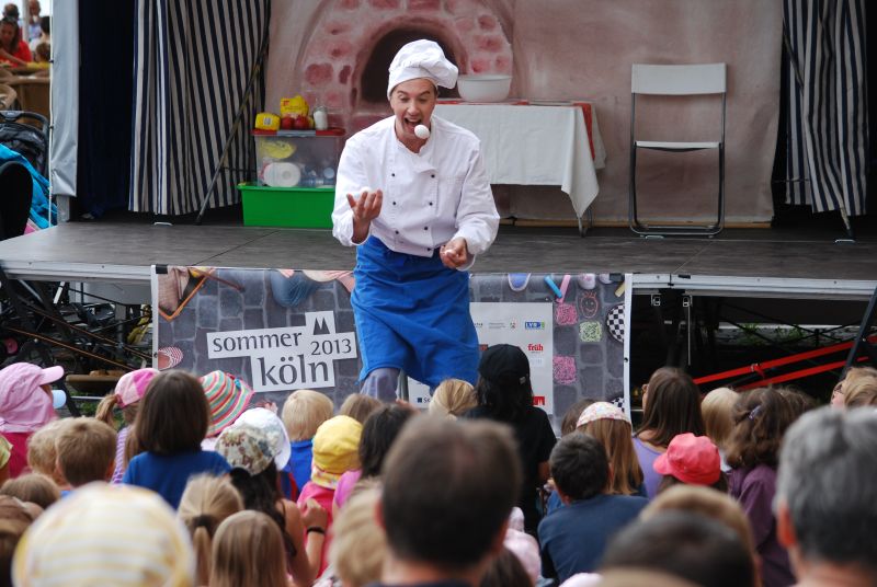 Es könnte ja sein, dass sie den Teig vorher aufgegessen haben oder dass sie beim Jonglieren, die Eier verlieren, oder das ihnen aus unerfindlichen Gründen die Äpfel ausgehen. Auch wenn der Apfelkuchen nicht fertig werden sollte, eines ist gewiss. Groß und Klein haben viel Spaß dabei, und ist ein Grund, vielleicht morgen um 16:00 Uhr im Altenberger Hof in Nippes vorbei zu schauen.