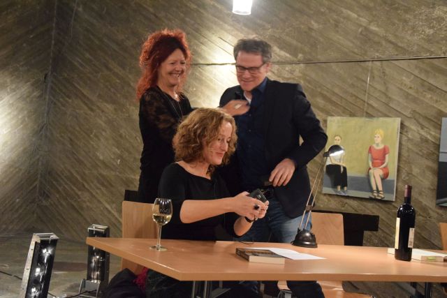 Gegen diese Strategie spricht eine weitere, für mich im Moment, unerfüllbare Möglichkeit, alle Krimis gelesen zu haben und vielleicht auch die einer an diesen Abend anwesesenden weiteren Autorin, nämlich Gisa Klönne. Dann hätte ich mit ihr so, wie meine nette Sitznachbarin plaudern können und ich hätte den Vergleich gehabt. Wirkliche Krimifans wie meine Freundin Sabine, sind Hardcore Fans, sie haben alle gelesen. In meinen Bücherschrank befinden sich einige Krimis, jedoch von unterschiedlichen Autoren, es gibt nur einen Autor von dem ich drei Krimis gelesen habe und das liegt daran weil er mir drei mal auf der Lit. Cologne begegnet ist . Auch das kann sich ändern.