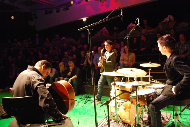 Gestern Abend, gab der erst 14 jährige Gitarrist Andreas Varady, im Alten Pfandhaus, zusammen mit sein Vater „Bandi“ Varady und dem ebenfalls 14 jährigen David Hodek, sein Deutschlanddebüt.