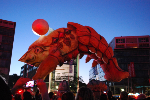 Doch wurden sie manchmal abrupt geweckt,weil plötzlich eine dicke Krake oder Seepferdchen durch die Menge tobten und für Sekunden in greifbare Nähe kamen oder man von den Akteuren aufgefordert wurde Platz zu machen.