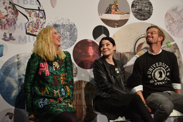 oder ihr geht zu Rosali Schweizer, die gar nicht zimperlich mit ihren farbenfrohen instalationen umgeht und den Besuchern ihre Arbeit erklärt hat,