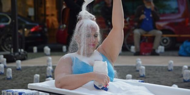FAT FACTS forscht zwischen Lust und Frust und bringt die Sinnlichkeit des Dickseins im Zusammenspiel mit raumgreifender Körperlichkeit in den urbanen öffentlichen Raum.