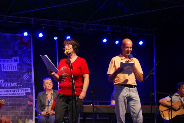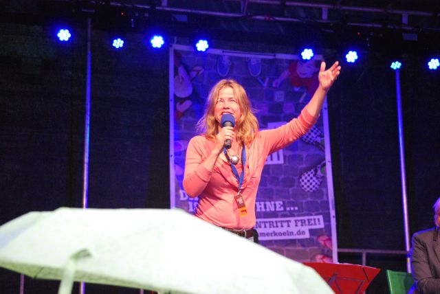 „Anne Rixmann, Michi Kleiber und Friso Lücht laden an fünf Abenden zum Mitsingen ein. In diesem Sommer Köln gibt es wieder abendlich wechselnde Themenblöcke. In der ersten Halbzeit singen wir Lieder aus dem jeweiligen Themenblock, und nach der Pause wird das gesungen, was das Publikum will. Auf der Sommer Köln Facebook-Seite können die Titel vorab „geliket“ werden. Das Beste kommt dann immer zum Schluss. Solosänger dürfen sich nicht nur bei Frau Knüppel anmelden, sondern auch vorab auf der Sommer Köln Facebook-Seite. Aber Frau Knüppel regelt die Reihenfolge an Ort und Stelle. Wer am frenetischsten gefeiert wird, gewinnt am Abend ein kleines Fässchen Früh-Kölsch von unserem Sponsor.“