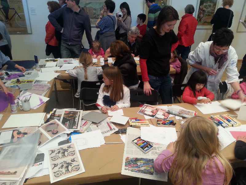 Später führt uns zwei Werbegrafiker durch die Ausstellung „als Kitsch noch Kunst war“, im Käthe Kollwitz Museum . Dort zeigten sie uns Werbung im Wandel der Zeit. Außerdem fanden dort Malaktionen statt.