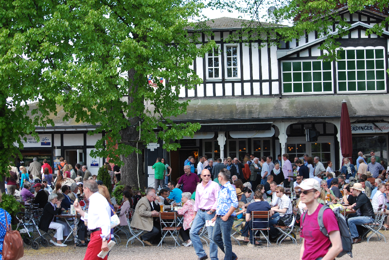 Denn kaum ist ein Rennen vorbei, laufen Fotografen und Publikum aufgeregt auf die entgegengesetzte Seite, wo in der Nähe vom Rennbüro die Renneinläufe ausgewertet werden und dann die Siegerehrung stattfindet (das ganze geht dann neun mal so). Als Kolumnistin fragt man sich natürlich, was machen die Jockeys mit all den Schüsseln und Tellern die sie da neben Ruhm, Geld und Ehre überreicht bekommen, da sie ja international unterwegs sind?