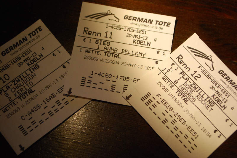 Ich persönlich wette wenn ich schon mal da bin für kleines Geld (1-2 €) , just for fun mit. Da ich als Kultur Kolumnistin, ein breites Feld in Sport und Kultur bediene, habe ich natürlich nicht den absoluten Durchblick. Ein bisschen Feldforschung ist natürlich vorher schon nötig, (im Programmheft, sind Favoritenempfehlungen angegeben) aber auch z.B. bei German Racing, kann man sich die Statistiken der Pferde ansehen. Das allein genügt natürlich nicht,neben Glück im Spiel, sollte man auch auf die Jockeys schauen (auch da gibt es eine Rangliste. )