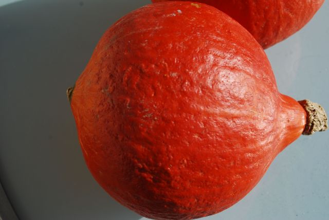 Ich habe letztens einen Hokkaido verarbeitet, das ist so ein kleiner, knallorangefarbender Kürbis und der war so knallhart (insgesamt), dass ich mir bald in die Flossen geschnitten habe.