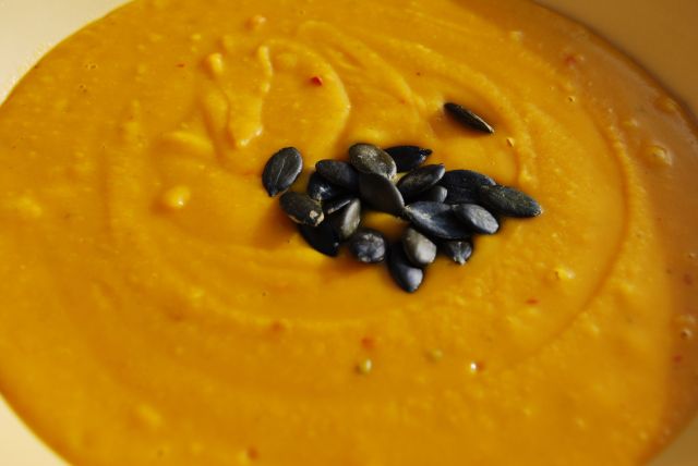 Die erste Kürbis-Suppe habe ich bei der Freundin gegessen, die am 1. November Geburtstag hat.