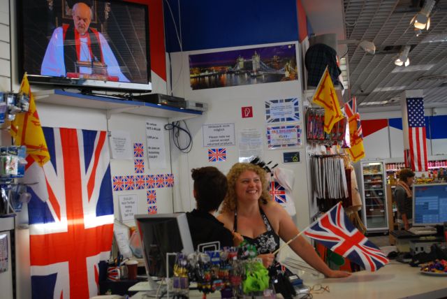 Während die Kölner, im Gegensatz zu den Briten, gestern arbeiten mussten, habe ich mal im English Shop vorbei geguckt. Das befürchtete Gedränge ist ausgeblieben. Eine Hand voll Besucher und vor allem Presse und Fernsehen, die darauf hofften, dass etwas von der Begeisterung der Massen und Medien über geschwappt ist.