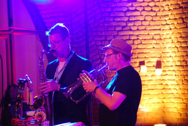 Im Stadtgarten spielte um 22:00 Uhr Gobra:“Das gRoBA-Orchester setzt sich aus Mitgliedern zusammen, die alle einen musikalisch unterschiedlichen Background haben. Dies zeigt sich auch in der (un-)typischen Besetzung, die von Streichern über Schlagzeug und singende Säge bis hin zu Weingläsern, DJ und Gesang reicht.