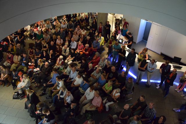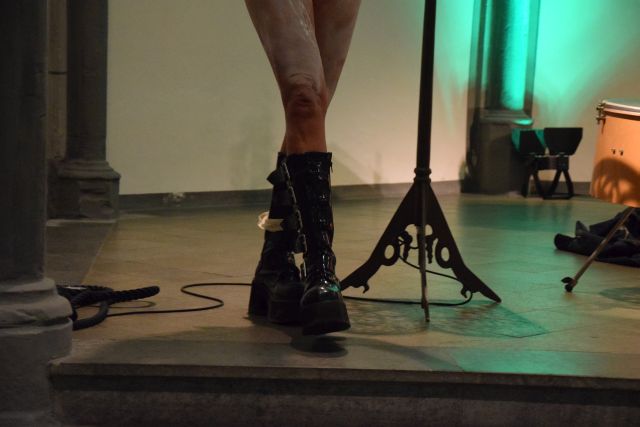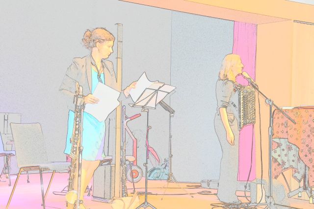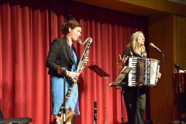 Das Duo Maye Guido, in der Fritz Thyssen Siftung mit Anne Maye an der Klarinette und Bassklarinette und Verena Guido die mit Gesang, Akkordeon, Geige und Effekten zu unterhalten wusste. (Chanson, Improvisationen und Weltmusik). Die schwierigste Übung des Abends war für sie den Veranstaltungsort zu finden.