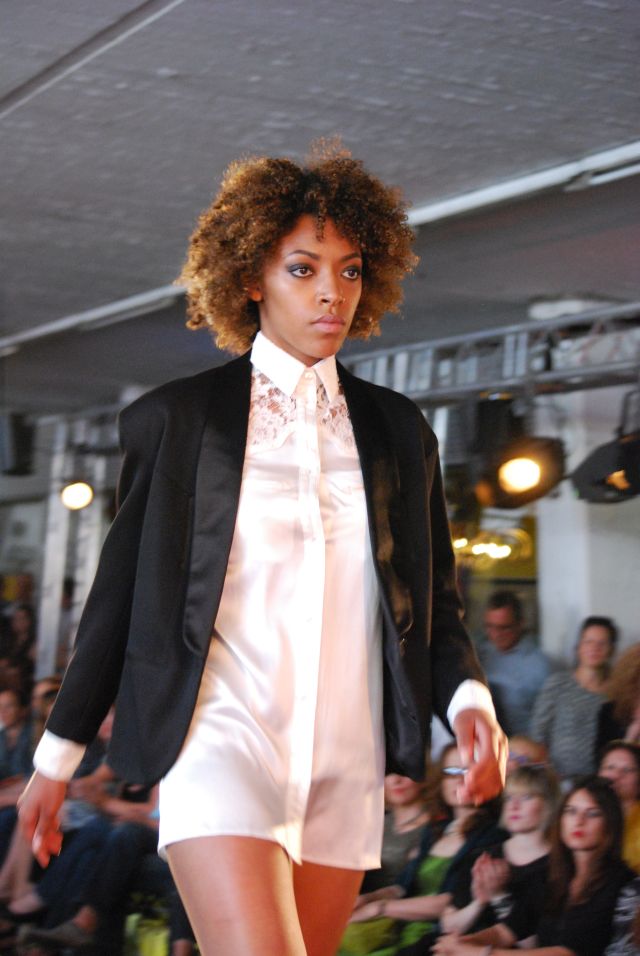 Außerdem gab es Mode von Bob 10.5.10, von der Gastdesignerin Doriane van Overeem und dem Gastdesigner Marius Janusauskas, beide aus Brüssel, dessen filigranes , transparentes Model, das ich schon vor ein paar Wochen besichtigen konnte, tiefe Einblicke bescherte.