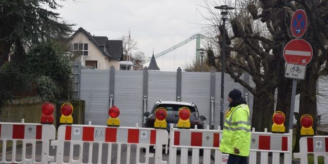 Der Weidenweg in Poll, d.h. ein Zufahrt zu gut einem Dutzend Häusern ist überschwemmt – Stadt Köln hat in der Vergangenheit hier einen Hochwasserschutz abgelehnt, weil die Fläche als Retentionsraum benötigt wird