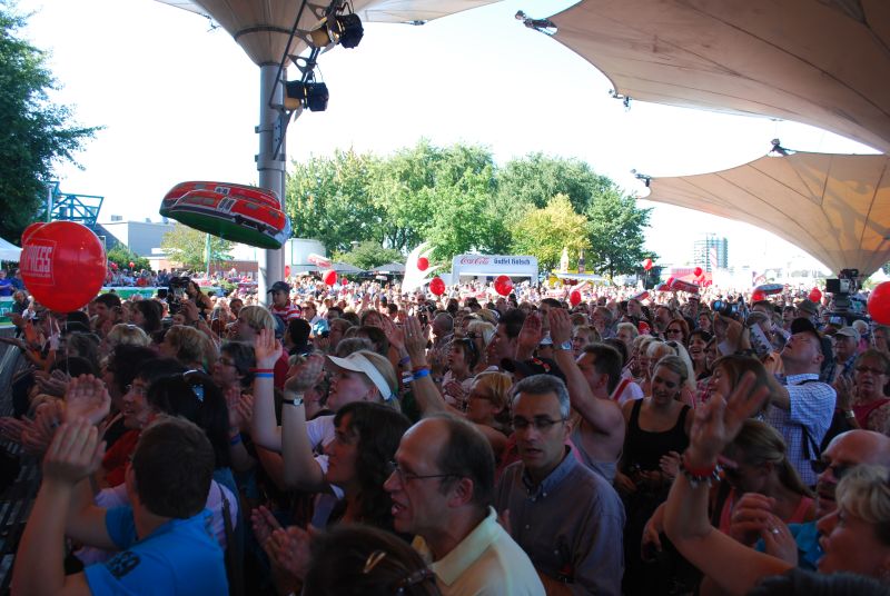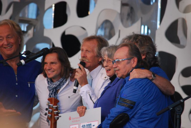 Als die Höhner den Scheck über 10000 € an Hedwig Neven DuMont überreicht, stand ich gerade nicht in der ersten Reihe und hielt eine fette, heiße Pizza in den Händen, ohne die ich das Bier nicht vertragen hätte und das fand ich, war bei den Temperaturen ein Muss!