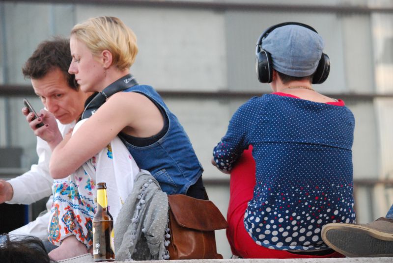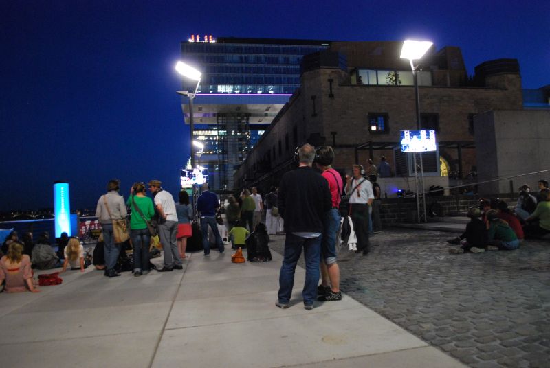 Das Konzert fand auf einem der Kranhäuser hoch oben auf dem Dach statt und leider konnte ich unten keinen erweichen, das ich einmal hoch auf`s Dach durfte, ich durfte nicht auf`s Dach, um ein paar Fotos von oben zu machen………unten war nichts zu hören. Das Konzert war nur über Kopfhörer zu hören, die man im Tausch gegen die Eintrittskarte und einem Ausweis als Pfand, erhielt.
