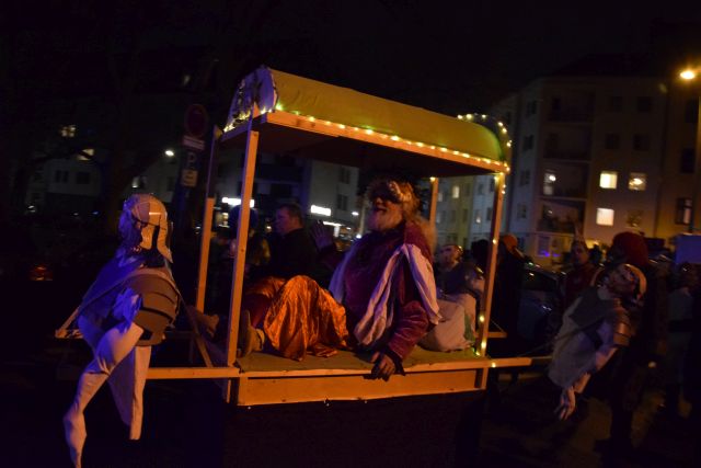 „Unter dem Motto ”Dr römischen Flott ze Ihre: Öm de Alteburch eröm” ging der Geisterzug von der Alteburger Str./ Ecke Maternusstr. entlang der Altebuger Str. und An der Alteburger Mühle weiter Auf dem Römerberg, Unter den Ulmen, Goltsteinstr., Koblenzer Str. und endete auf der Bonner Str./Ecke Elsasstr.. .