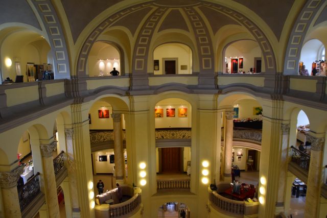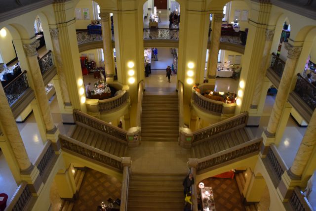 Der 16. Kunst- und Handwerkermarkt findet in dem schönen Treppenhaus des Oberlandesgericht statt.