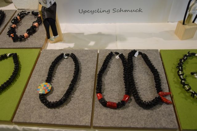 Es gibt feine Obstschnäpse, Porzellanmalerei, Keramiken, Kunst, Pralinen, Holzarbeiten, recycelter Schmuck und Goldschmiede Arbeiten.