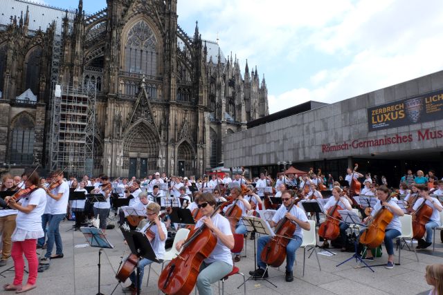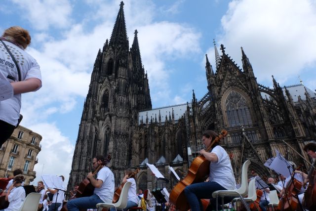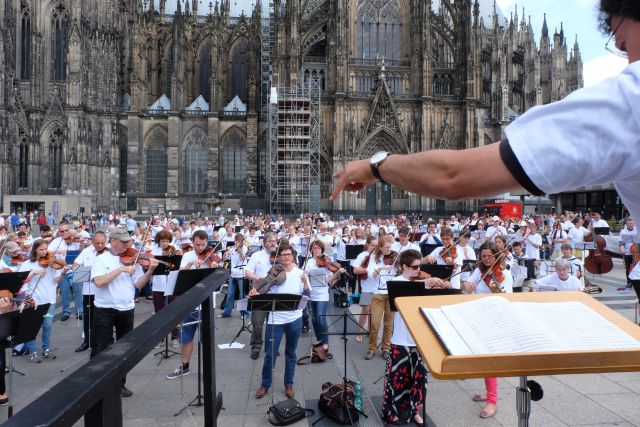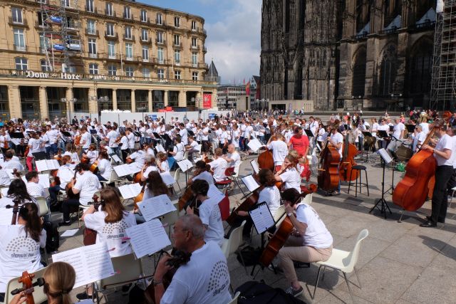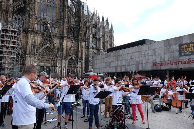 Das Gürzenich-Orchester Köln lud heute auf den Roncalliplatz zur öffentlichen Probe und zum Mitmachkonzert