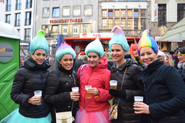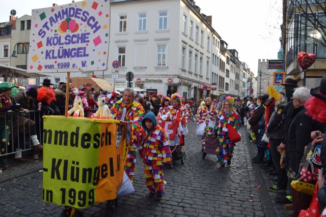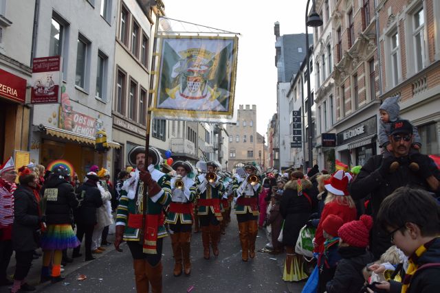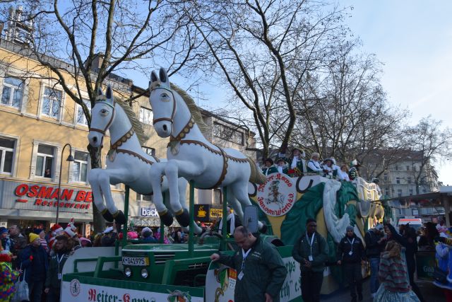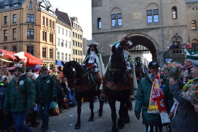 Ich persönlich mag ja die Pferde im Zug, kann aber manchmal die Eltern nicht verstehen , die ihre Kinder nicht davon abhalten, vor ihren Läufen Kamelle aufzuheben.