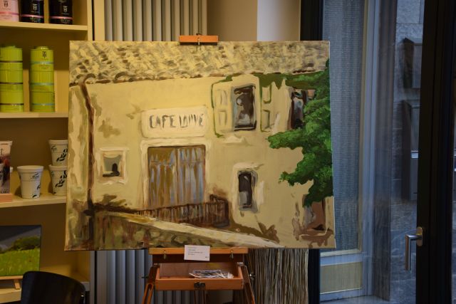 Ursula Klein, die in der Boulangerie-Patisserie Epi ausstellt hingegen weckt Urlaubs-Sehnsüchte: Fronkreich, Fronkreich hach, ihr Augenmerk gilt verfallenen Häusern mit bröckeligen Fassaden. Sie zeigt durch Reduzierung das Wesentliche und fängt so den Charme der Provence ein.