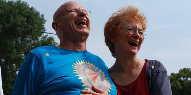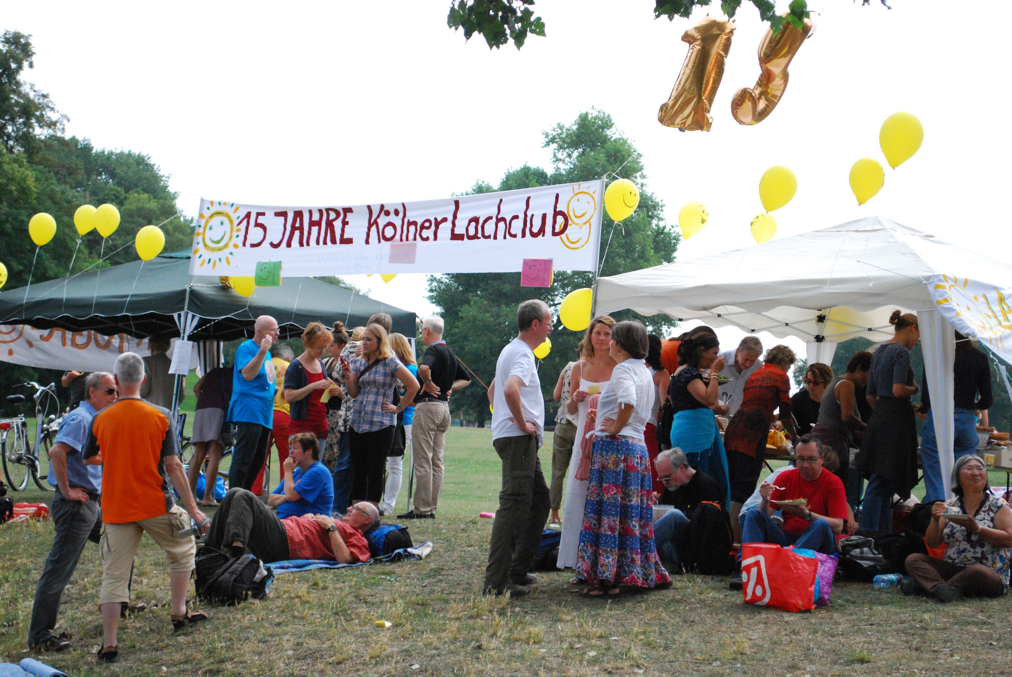 Heute war ich kurz beim Jubiläum des Kölner Lachclubs auf. Ich war etwas spät dran und gespannt ob nach meiner einstündigen Verspätung, das Lachen schon vergangen ist, noch weit gefehlt, diese muntere Truppe kam mir entgegen beklebte mich mit smilies und sprach ein seltsames Kauderwelsch namens Gibberisch , was völlig sinnfrei ist und doch Emotionen widerspiegeln kann und umarmt wurde ich auch 😉