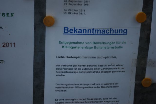Ich bin durch zwei, drei Kleingartenanlagen geschritten, hier kennt man sich und jeder Fremde wird registriert. Ich war auf der Suche nach den sieben Zwergen, doch die hatten sich versteckt und ich wollte keine fremden Gärten betreten.