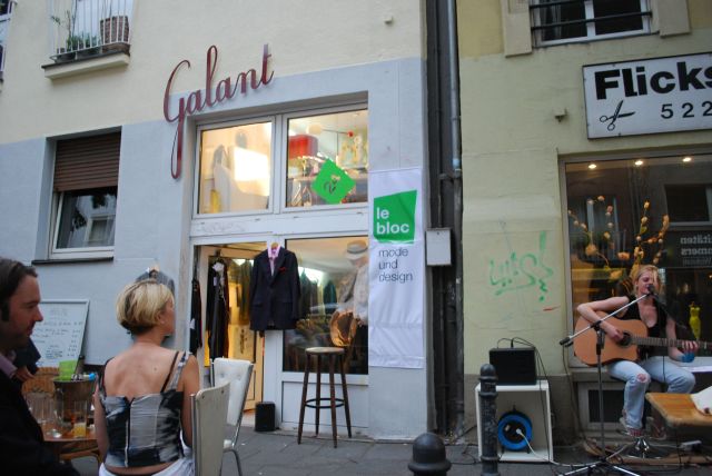 „Kölns Kreativ-Szene kann es nicht lassen: Jung, dynamisch und experimentierfreudig sprengt sie auch in diesem Jahr wieder die Grenzen zwischen Mode, Design, Kunst und Musik. Abseits des globalen Mainstreams feiert das Belgische Viertel unter der Schirmherrschaft der Bürgermeisterin Angela Spizig am 4. Juni zum dritten Mal le bloc – mode und design.