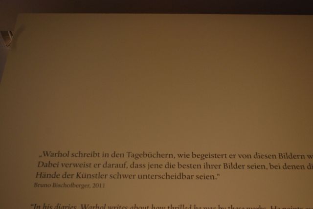 Ich muss sagen als ich letzten Sonntag das erste Mal in dieser Ausstellung war, hatte ich ungeheuren Respekt. Ich wollte zunächst wenigstens die Biografie von Andy Warhol lesen, um mich dieser Ausstellung anzunähern. Obwohl ich an unserer kleinen Buchhandlung nur knapp gescheitert bin, weil sie nur über eine bescheidene Abteilung Kunstbände verfügt, habe ich diesen Gedanken nicht aufgegeben, sondern nur verschoben.
