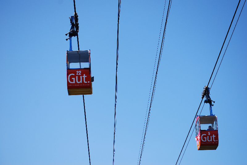 Das wollte ich mir mal von oben angucken. Das war ja nicht das erste Mal, dass ich in einer Gondel oder einen Sessellift saß, trotzdem hatte ich plötzlich Angst, als ich in dieser Blechbüchse saß. Ich versuchte mich zu trösten , das ja nicht dauernd irgendwelche Gondeln in den Rhein fallen.