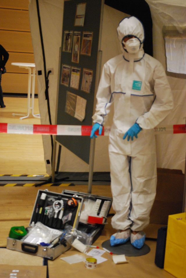 Super spannend war es bei der Polizei! Dort konnten wir etwas über die Spurensicherung am Tatort erfahren. Ein Beamter erzählte nachdrücklich, warum sich bei ihm die Nackenhaare sträuben, wenn die Herren Kommissare in Krimis einfach so ohne Schutzkleidung auf den Tatorten herum latschen und so alle Spuren zunichte machen.