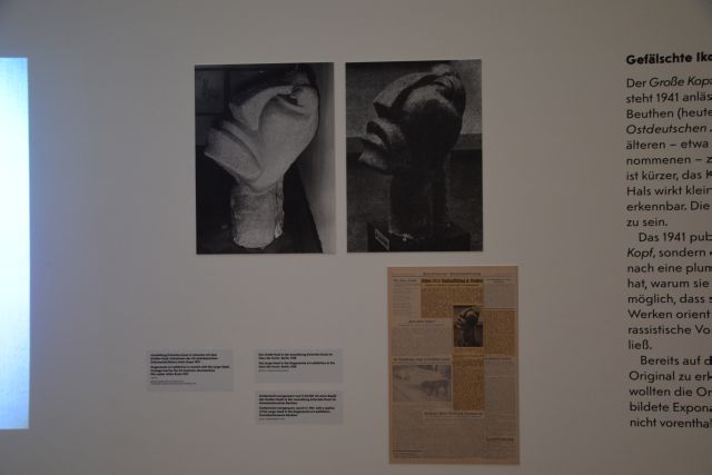 So fiel der Praktikantin, des Museum Ludwig auf, die für einen Teilbereich der Ausstellung recherchiert hat, dass es sich bei dem großen Kopf, den das Naziregime für seine Wanderausstellung „Entartete Kunst“ als Aufhänger benutzten, schon bald nicht mehr um das Original handelte.