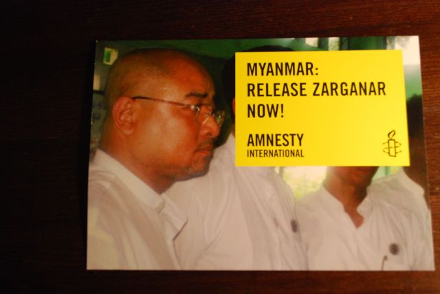 Ich weiß nicht ob General Than Shwe meine Postkarte je erhalten wird, es ist eine Postkarte von Amnesty International auf der ich mich für die Freilassung von Zarganar einsetze, der in Myanmar zu 59 Jahren Gefängnis verurteilt wurde. Als Absender habe ich Köln-Kultur-Kolumne angegeben.