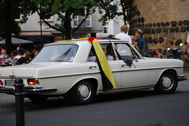 Es sollte ein heißer Tag werden und wir wollten uns am Eigelstein, trotz anderweitiger Offerten ein schattiges Plätzchen suchen. Ich hatte vorsorglich, zwei kleine Flaschen Mineralwasser eingepackt und trug ein hauchdünnes etwas von einem Oberteil . Nur die Sonnencreme hatte ich vergessen. Endlich kam meine, Fankette zum Einsatz, ich hatte sie dezent an meine Tasche gebunden und wollte so mit meiner Freundin das “Deutschlandspiel” verfolgen.