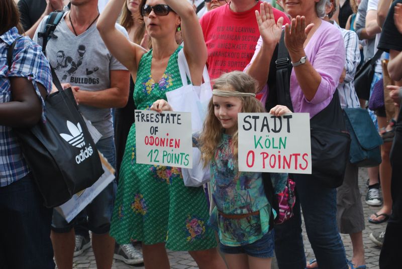 Unter anderen Karina Wolff, Künstlerin und Begründerin der Facebookseite „Rettet Odonien“ hatte via Facebook, zur Demo auf dem Rudolfsplatz aufgerufen.