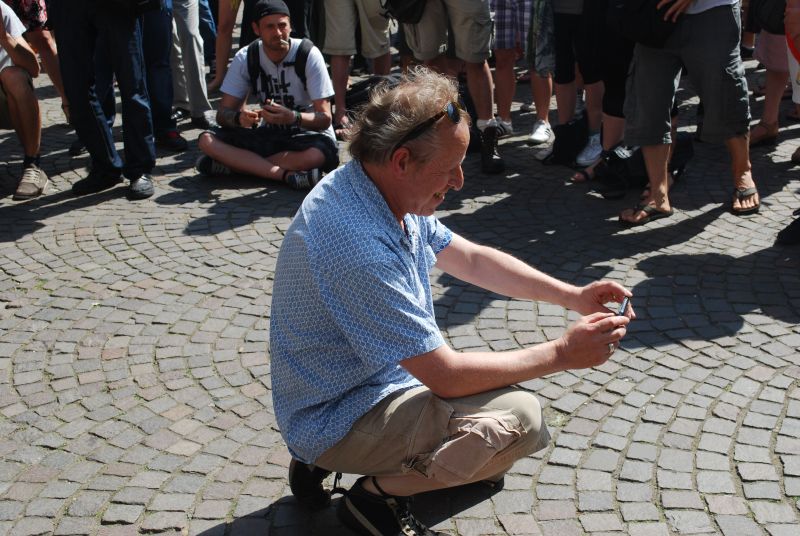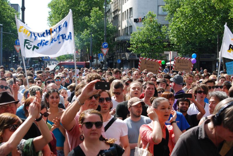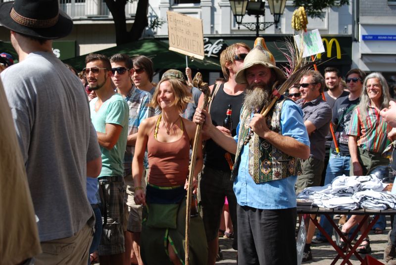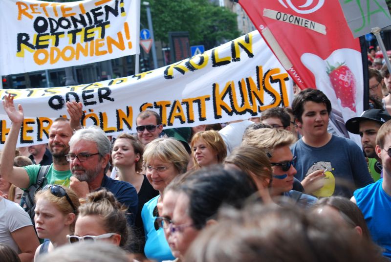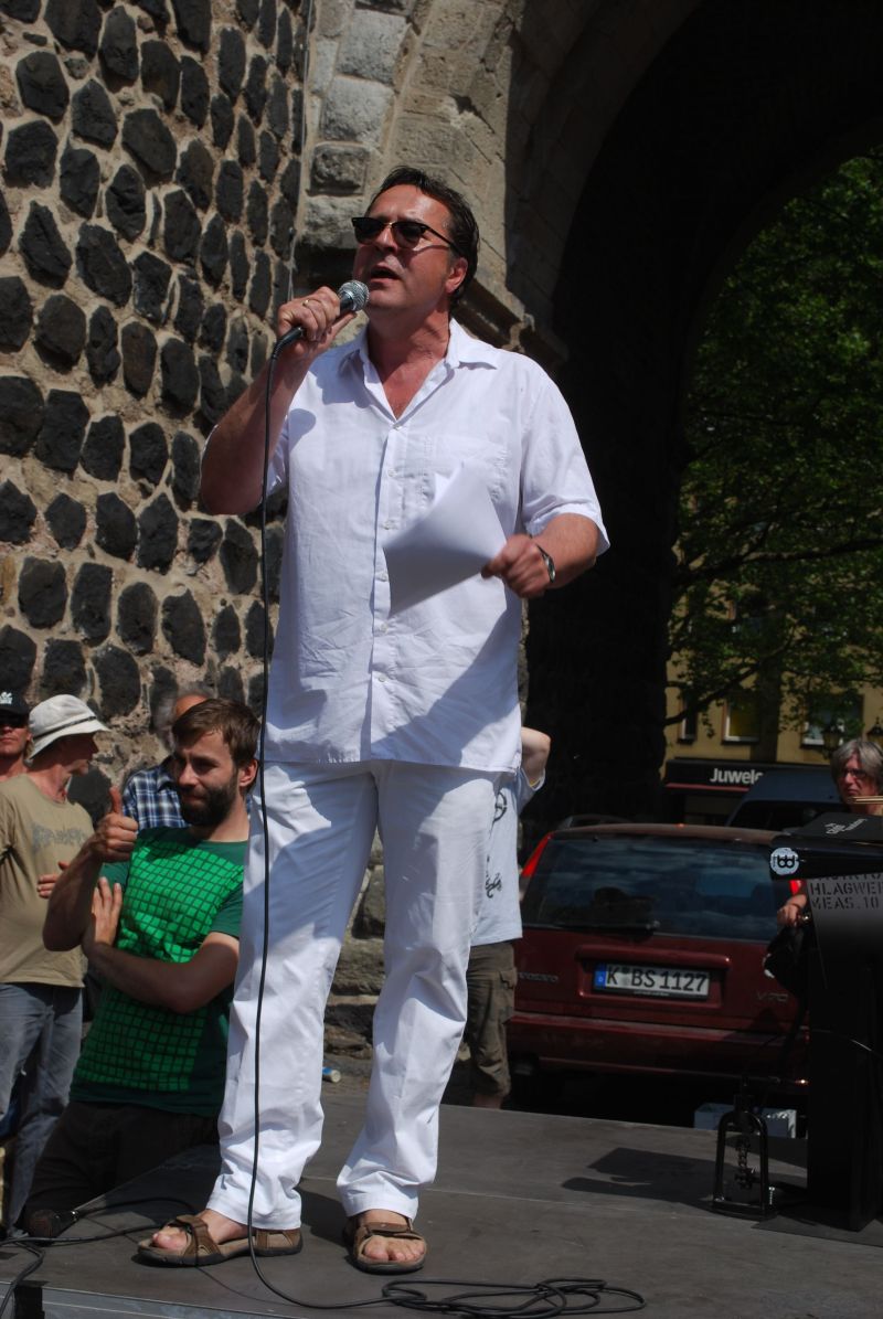 aber diese Sorge war unbegründet. Immerhin sind ca. 1000 Teilnehmer gekommen und das Ganze war ein Bekunden der Kölner, dass die Stadt auch ihnen gehört, dass sie so lieben wie sie ist und das sie sich nicht weiter bereit sind, sich ihre Kulturräume streitig machen zu lassen. Mit dabei waren , Karina Wolff, Andreas Pöttgen (Jugendpolitischer Sprecher der SPD Fraktion )Hans Mörtter,der Pfarrer der ev. Lutherkirche, Dr. Walter Schulz (Veranstalter des Roboter-Festivals-Robodonien). Außerdem sorgten u.a. Klaus der Geiger und Papa Verde, die zum Singen animierten für gute Stimmung .