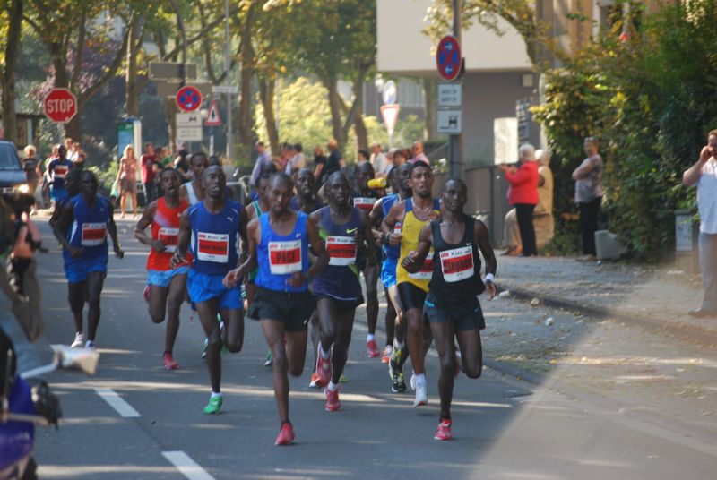 Spitzengruppe der Männer beim 15.Köln Marathon mit dem Vorjahressieger Samson Barmao,in der Mitte, bei Kilometer 16